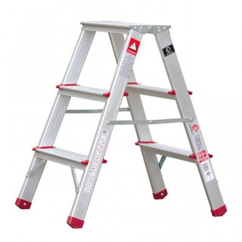 Драбина виготовлена з міцного, нержавіючого алюмінієвого профілю. Відповідає європейському стандарту якості EN131, витримує навантаження до 150 кг. Рифлені широкі (8 см) сходинки не дозволять зісковзувати нозі та гарантують безпечний підйом та зручне положення під час роботи.