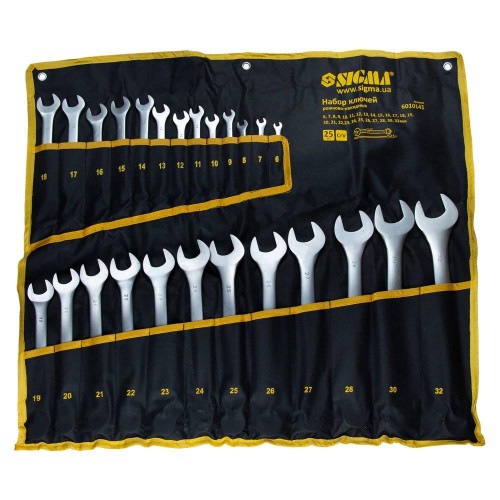 Ключі ріжково-накидні 25шт 6-32мм CrV satine (тк чохол) SIGMA (6010141)