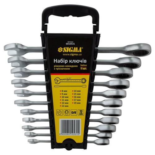 Ключі ріжково-накидні з тріскачкою 11шт (8-17, 19мм) CrV satine SIGMA (6010531)