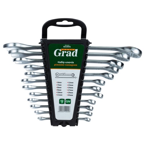 Ключі рожково-накидні 12шт (6-14, 17, 19, 22мм) CrV GRAD (6010945)