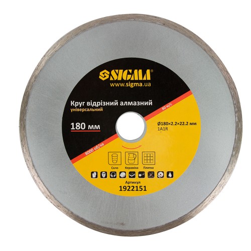 Круг відрізний алмазний універсальний Ø180×2.2×22.2мм, 8000об/хв SIGMA