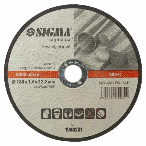 Круг відрізний по металу та нержавіючої сталі Ø180×1.6×22.2мм, 8500об/хв