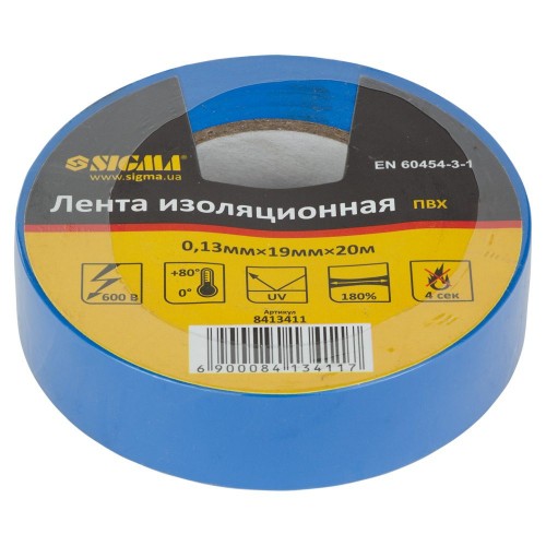 Ізолента ПВХ (синя) 0.13мм×19мм×20м SIGMA (8413411)