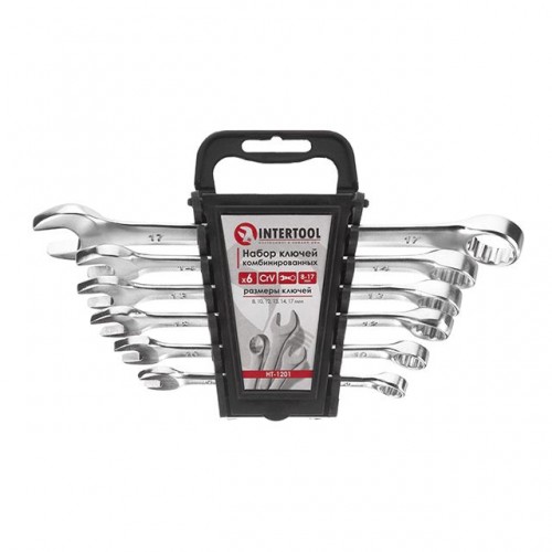 У набір INTERTOOL HT-1201 увійшли ріжково-накидні ключі, розмірами: 8; 10; 12; 13; 14; 17 мм. Це дозволяє обрати необхідний розмір під будь-які завдання для монтажу та демонтажу різьбових з'єднань гайок та болтів.