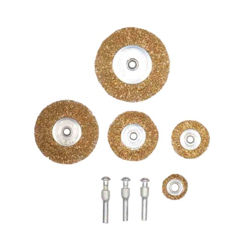 Набір щіток дротяних 5шт Ø25; 38; 50; 65; 75мм хвостовик Ø6мм (латуньована) Grad