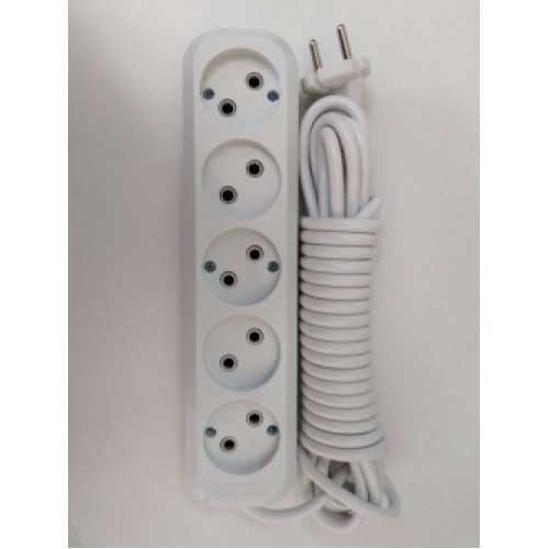 Подовжувач 5-містний без заземлення 5м білий