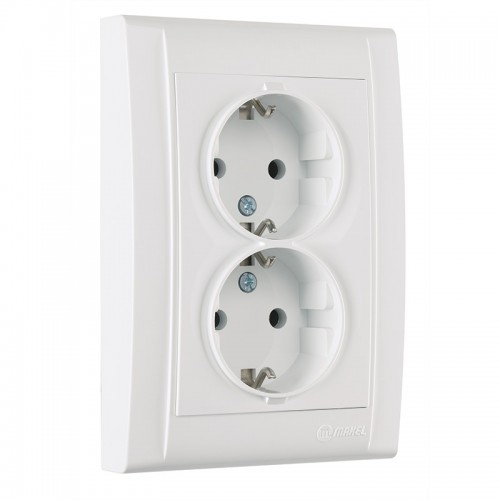 Розетка подвійна із заземленням Makel Defne без шторок білий (42001057)