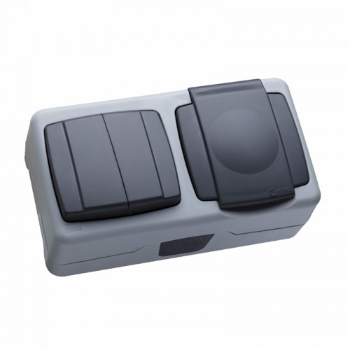 Розетка + вимикач із заземленням Makel Nemliyer Plus без шторок з кришкою сірий (36064203)