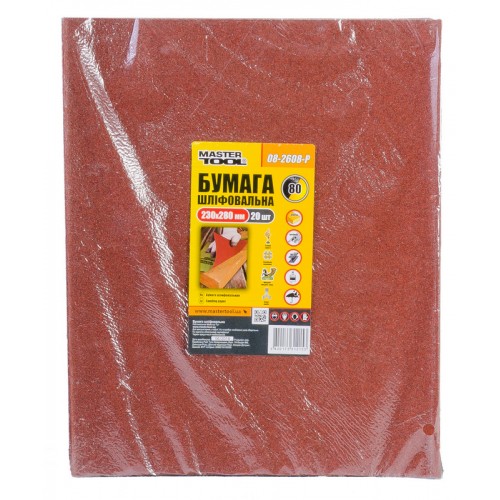 Бумага шлифовальная водостойкая MASTERTOOL Р80 230х280 мм 20 шт (08-2608-Р)
