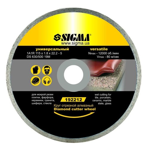 Круг отрезной алмазный универсальный Ø125×1.8×22.2мм, 12000об/мин SIGMA