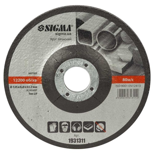 Круг зачистной по металлу Ø125×6.0×22.2мм, 12200об/мин SIGMA (1931311)