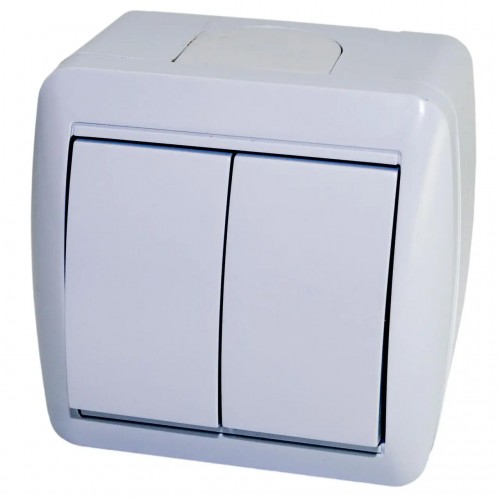Выключатель накладной Quantum двухклавишный брызгозащищенный белый, 1шт/уп