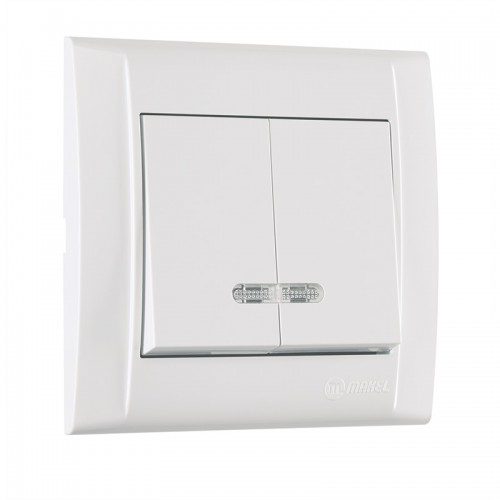 Выключатель двухклавишный Makel Defne с подсветкой белый (42001023)
