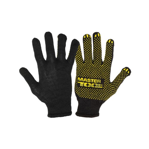 Рукавички трикотажні MASTERTOOL STANDART з ПВХ-крапками 70% бавовна/30% поліестер 10 клас 2 нитки 40 гр чорно-жовті (83-0326)