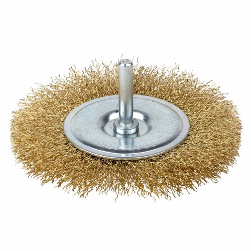 Щітка дротяна дископодібна Ø100мм хвостовик Ø6мм (латуньована) GRAD