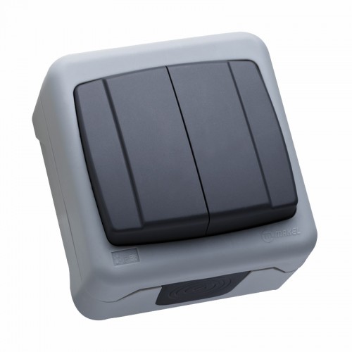 Вимикач двоклавішний Makel без підсвітки сірий (36064003)