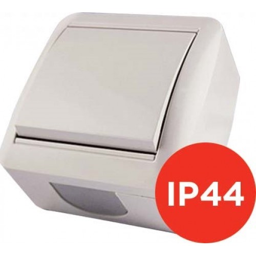 Вимикач накладний Quantum одноклавішний бризкозахищений білий, 1шт/уп
