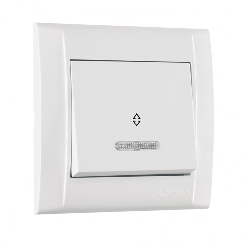 Вимикач прохідний одноклавішний Makel Defne з підсвіткою білий (42001025)